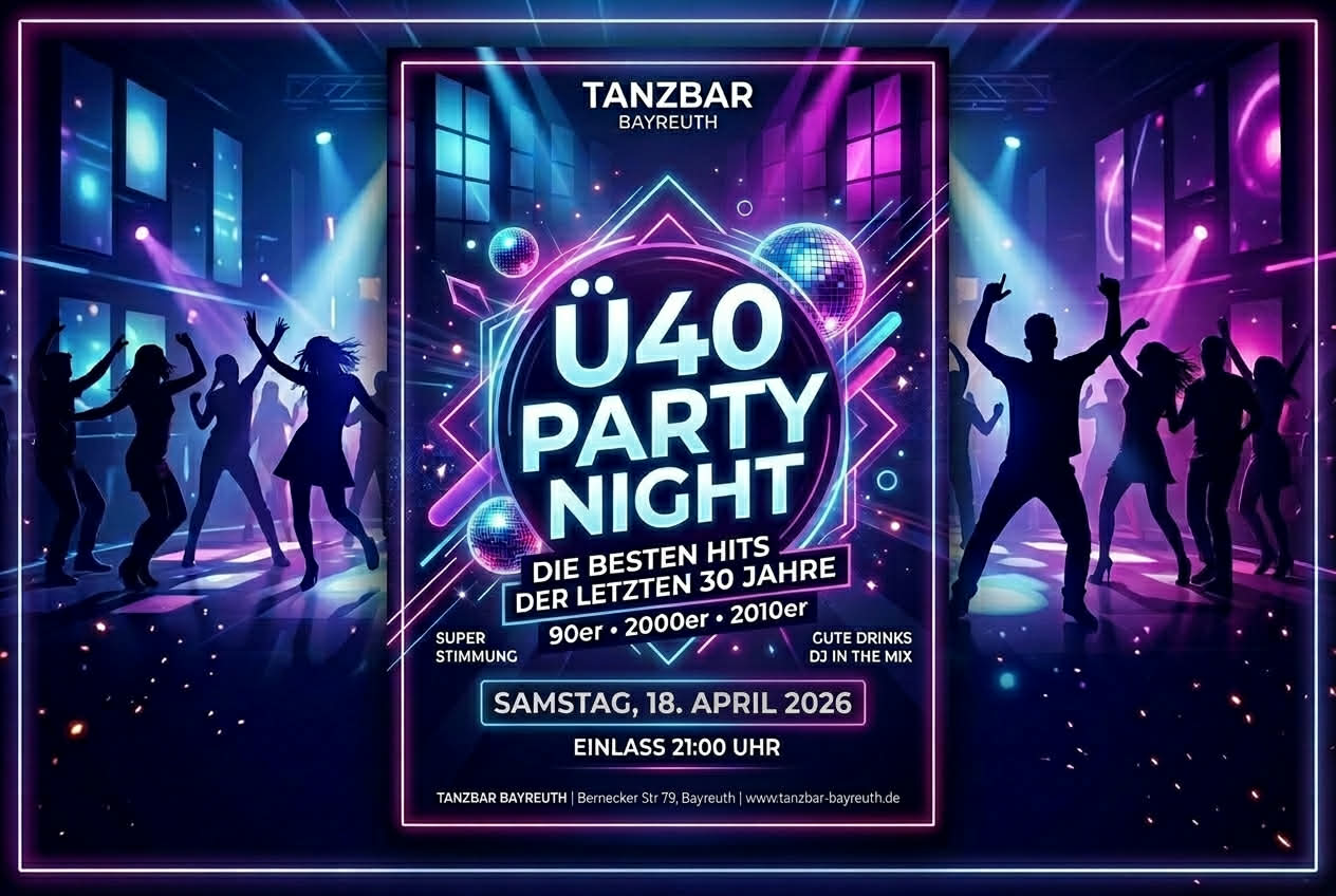 Bleibe auf dem Laufenden über unsere Veranstaltungen und Specials, indem du regelmäßig unsere Homepage besuchst. Wir freuen uns darauf, dich in der Tanzbar Bayreuth willkommen zu heißen!